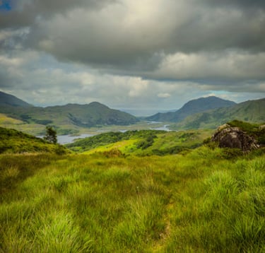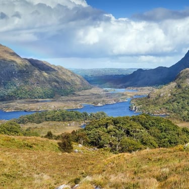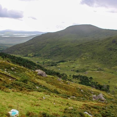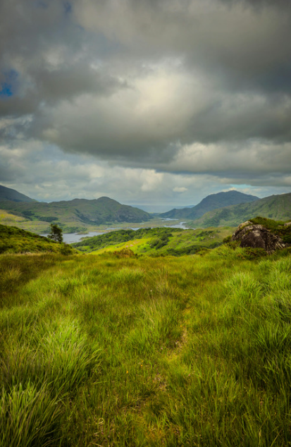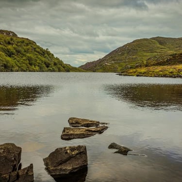 Superato il passo, il paesaggio cambia gradualmente: le montagne si addolciscono, compaiono i primi laghi e si entra nel cuore verde del Kerry.