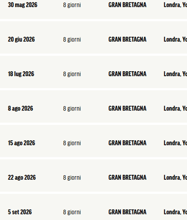 In nove giorni, esploreremo luoghi affascinanti, immergendoci nella storia, nella cultura e nella bellezza di questa incredibile nazione: visiteremo Londra, Stratford upon Avon, Warwick, Leicester, Nottingham, Leeds, York, Howard Castle, Harewood House, Cambridge...