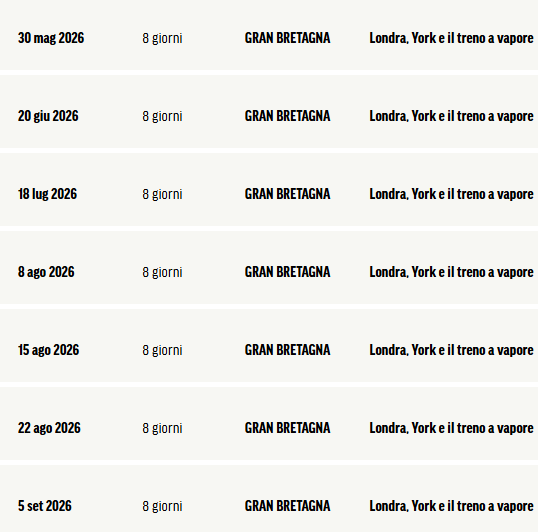 DATE TOUR LONDRA E YORKSHIRE